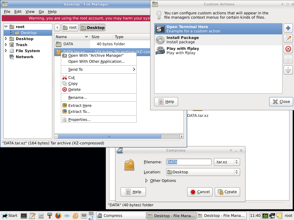 | file-roller, Thunar custom actions |