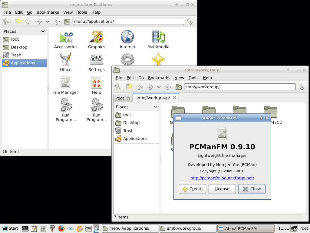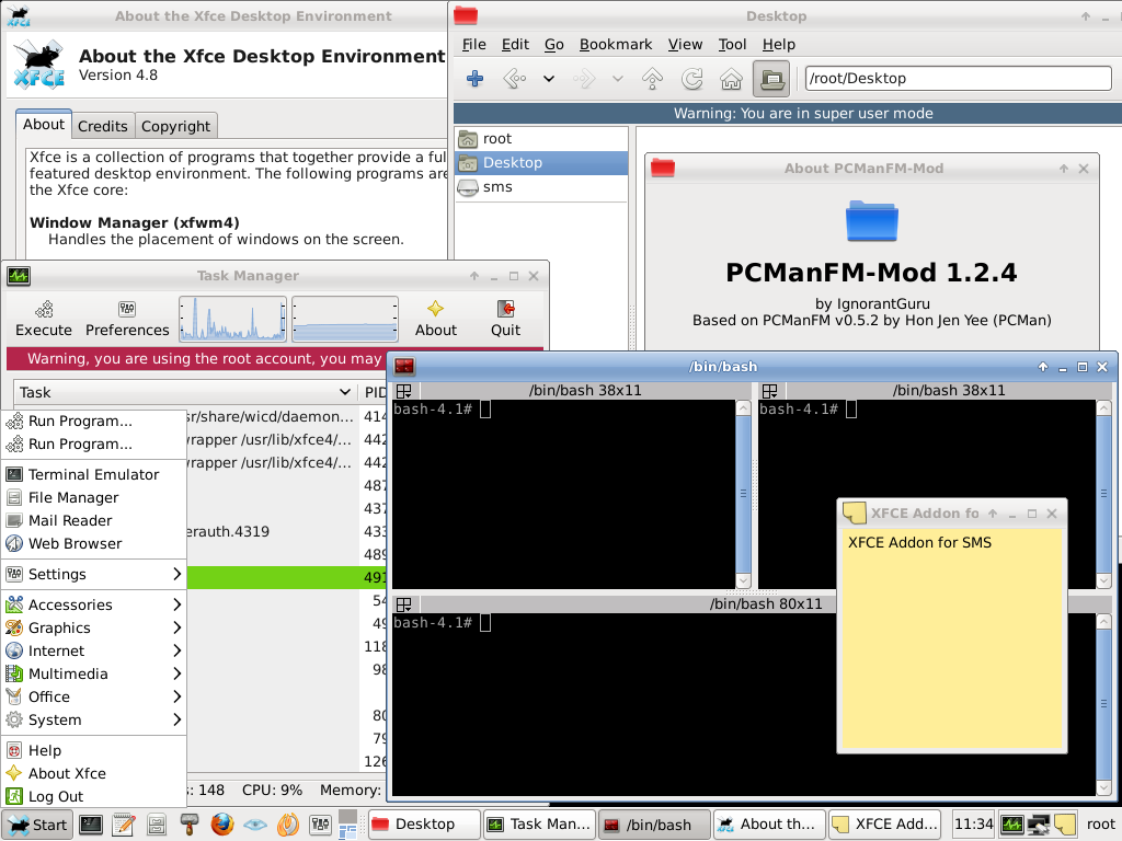 | XFCE, PCManFM-mod, taskmanager, terminator, xpad |