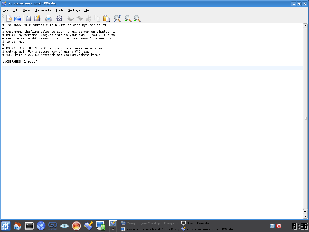 VNCSERVERS="1:root"