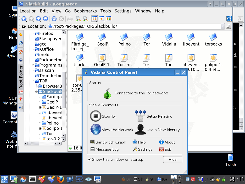 And further that if I start Tor from Vidalia the user who started Vidalia will own the process, consequently if started by root root owns the tor process. -Further, Vidalia depends on a working X window system which might be a disadvantage since I very often run my httpd- and vsftpd-servers not logged in (are up and running anyway Wink)