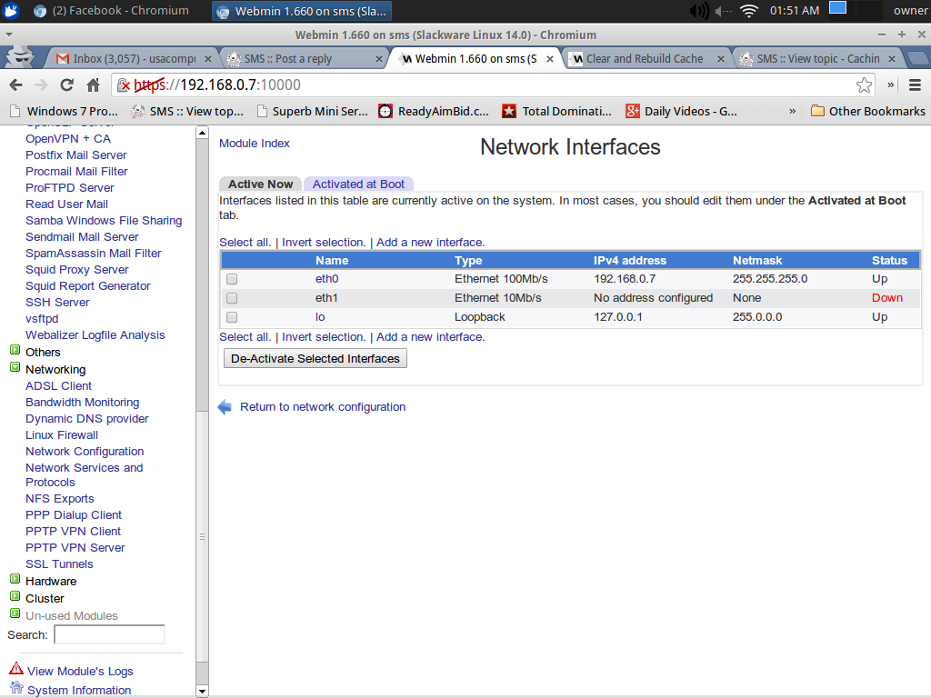 | Thanks. Also I need to know how to make dam sure that when the power button is pressed, that the caching server, dansguardian, and router are started automatically. Somewhere you can put in custom commands and scripts for startup. In the past with sms I always had a problem getting squid to start automatically, and to get squid to use more than 20 MB of RAM. I also am going to have to find the default user and pass for webmin and the port address to use via the browser. I forgot.