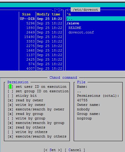 | Code: | drwxrwxrwx root/root 0 2011-03-22 20:40 etc/dovecot/